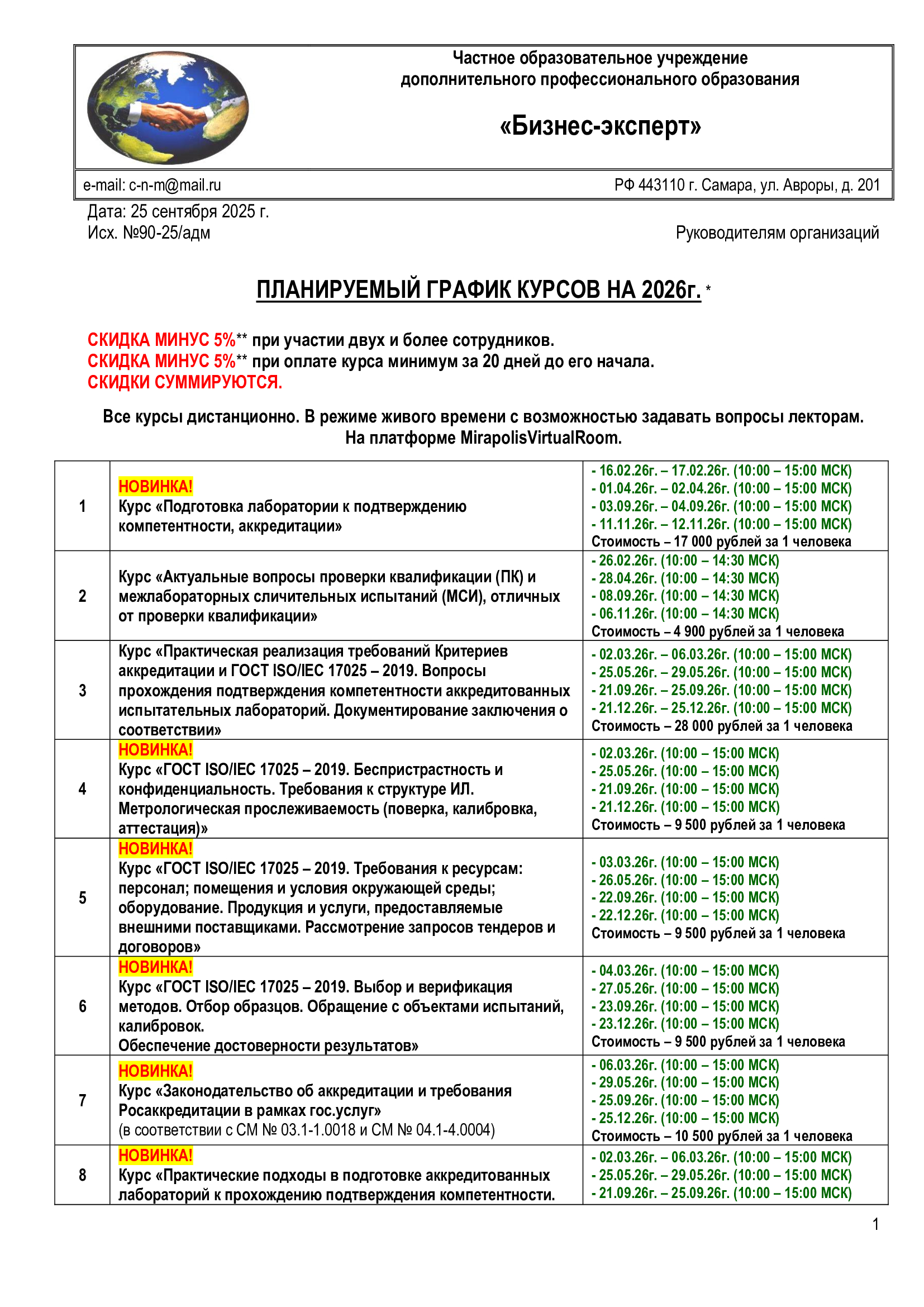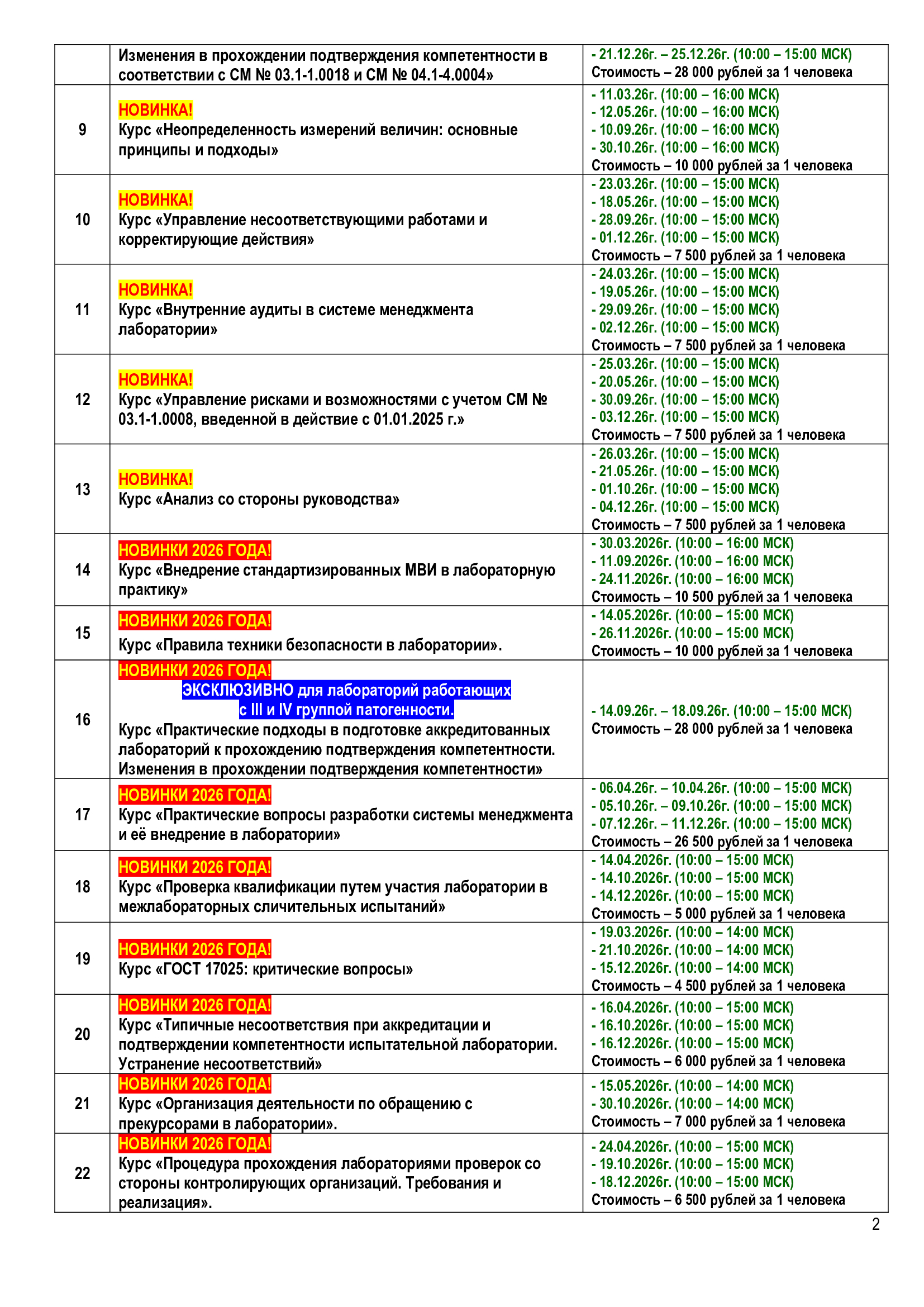 ПЛАНИРУЕМЫЙ ГРАФИК КУРСОВ НА 2026г